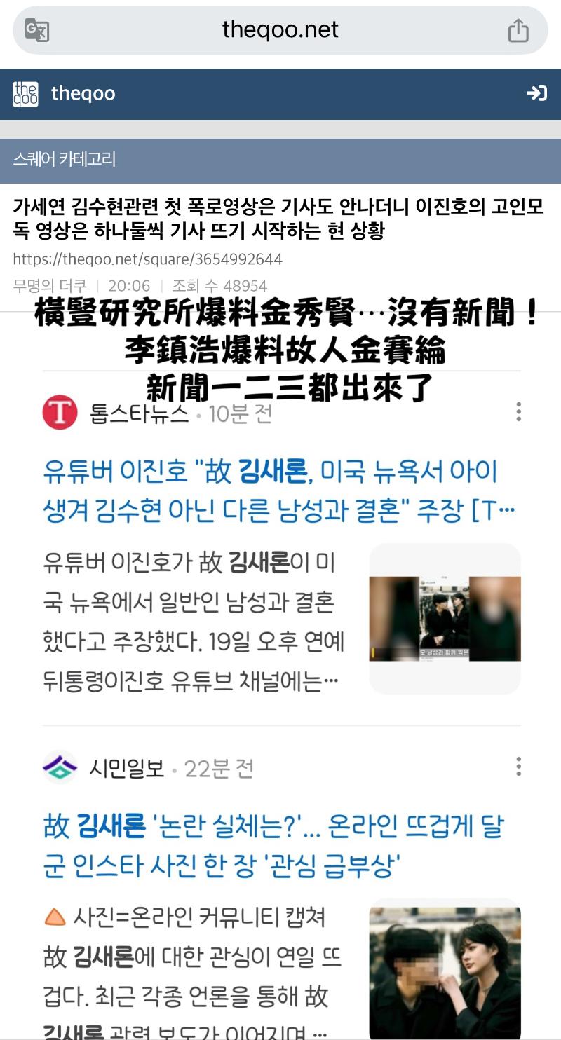 李鎮浩指控金賽綸遺屬故意隱瞞金賽綸已婚的事實,並企圖轉移焦點。對於突然爆出的結婚論,韓網的反應又是如何呢?有網友以「橫豎研究所爆料金秀賢沒有新聞,爆料已故金賽綸新聞全都出來了…」