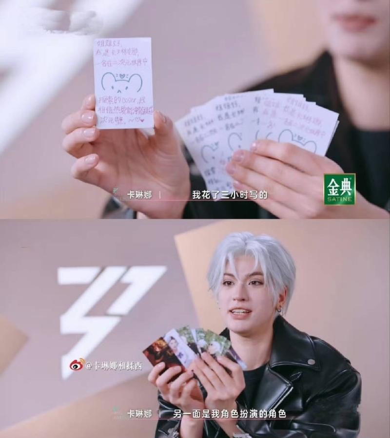 可愛的是,卡琳娜不愧是二次元的人,來浪姐居然還自備自我介紹的小卡,原來因為擔心其他姐姐不認識自己,所以還親手花了3個小時準備小卡👇
