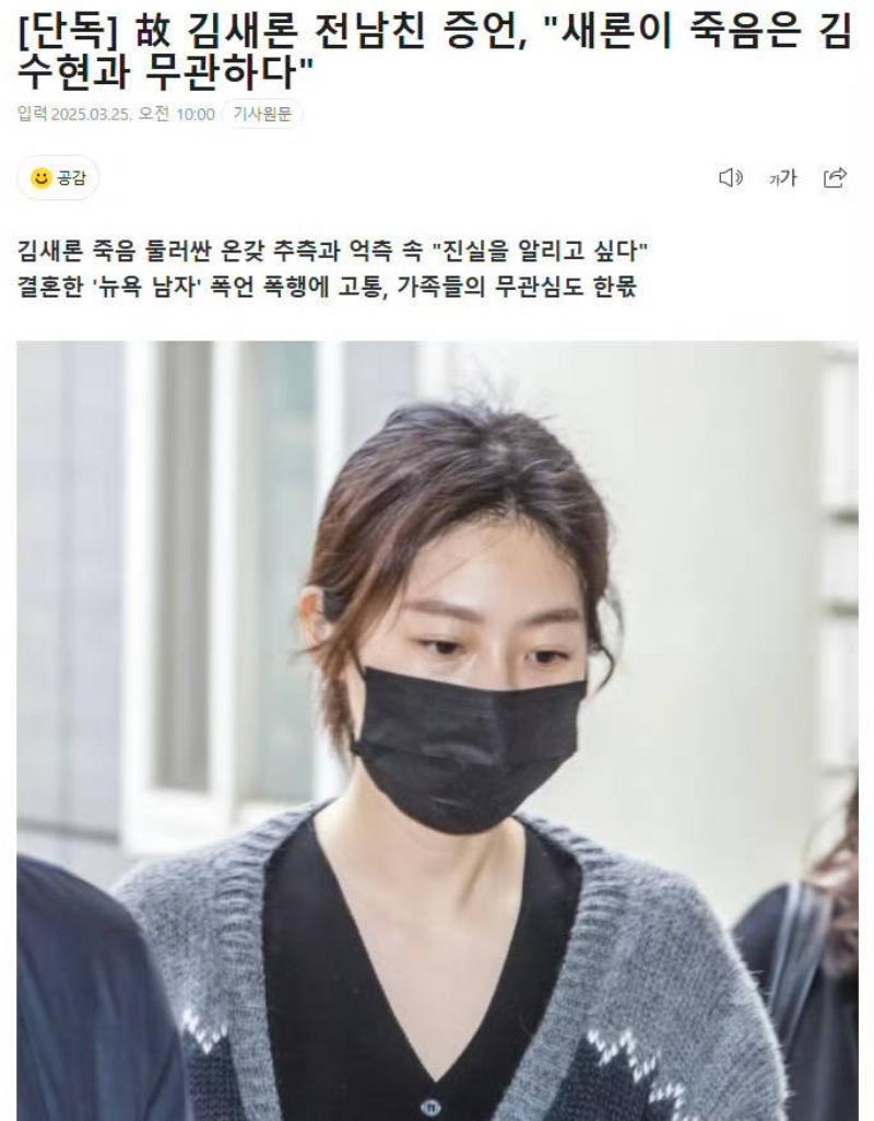 另外,對於家人反駁金賽綸已婚一事,K某表示:「女兒結婚家人怎麽可能不知情?這正說明早已經沒有親情。在生前不聞不問,死後卻翻出多年前與知名演員的舊聞,若無其他目的實在難以解釋。雖未見過金秀賢演員,但因其名氣而遭受非難,想必十分委屈。」