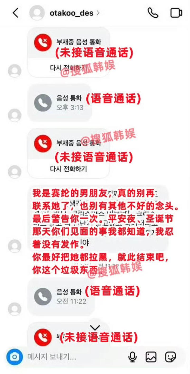 公開了金賽綸丈夫的持續騷擾,以及金賽綸讓K某別理會的截圖👇
