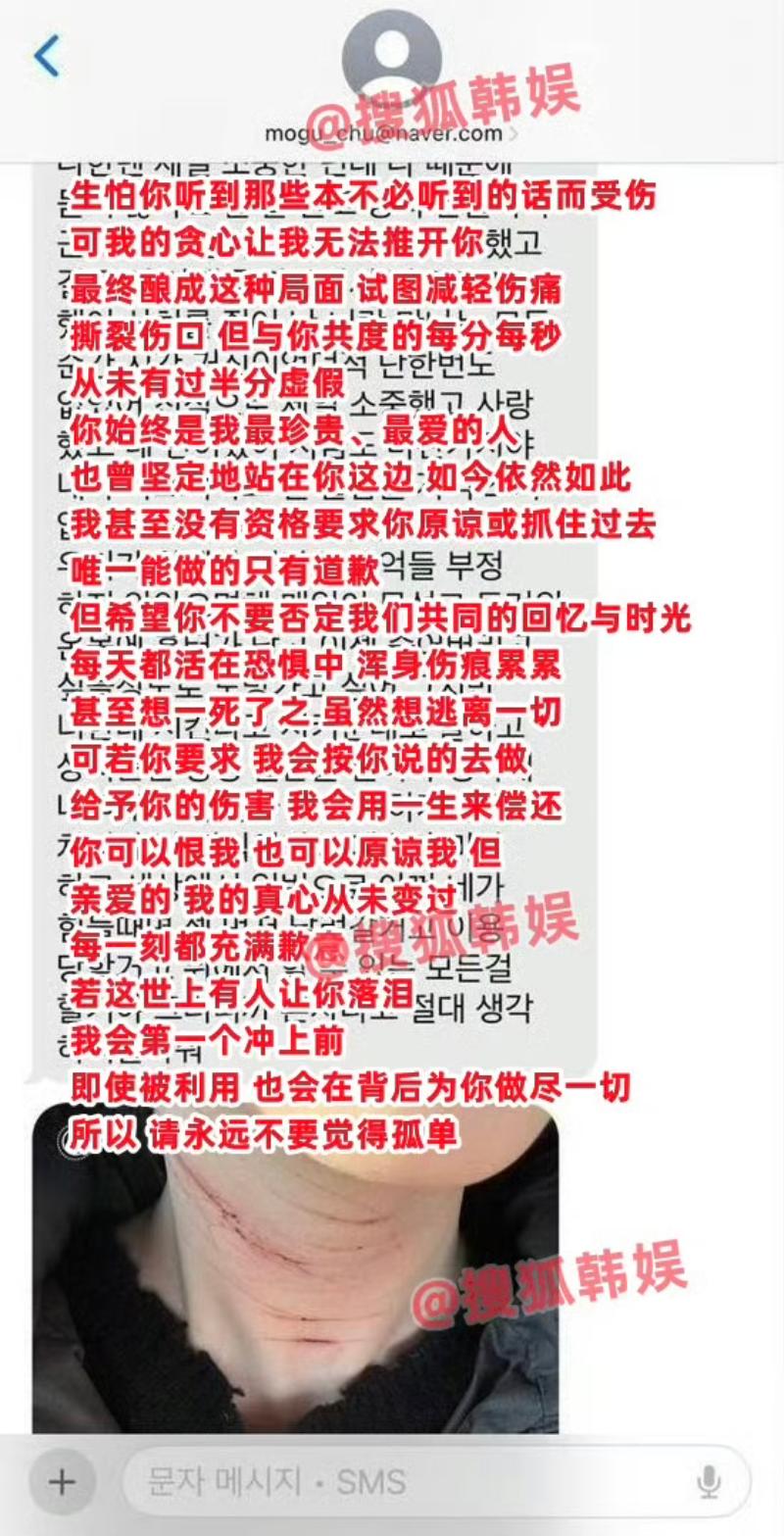 1月15日,金賽綸向K某發送短信透露被毆打事實:「對不起就罵我吧,說我是XX、瘋女人、精神病。我也整天挨罵挨打卻無法改變」,並告白表示:「只要你幸福,我別無所求,你是我在這世上最愛的人。」她解釋與紐約丈夫結婚的經過:「去年11月開始交往,起初他沈默寡言,而我因每天疲憊又無處依靠才一時糊塗。後來他威脅要公開聊天記錄,黑進我INS發照片,又打又罵太可怕了,所以不敢分手,也怕連累你。」