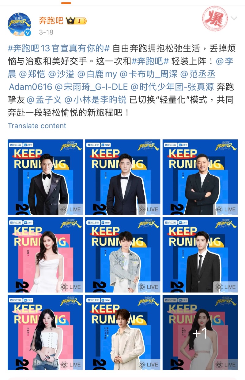 而《奔跑吧》節目官博也立刻轉發👇