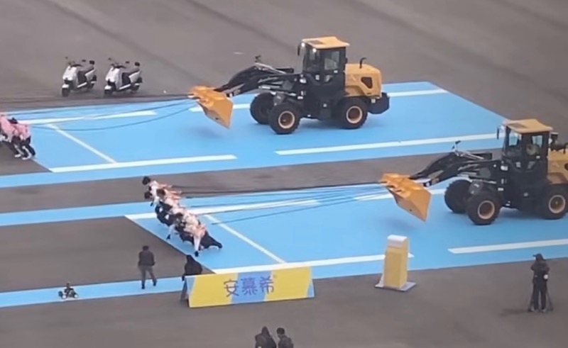 隨後有網友還原現場,原來一整天錄製的遊戲環節都十分耗力,像是白天迎著大風拉推土機👇