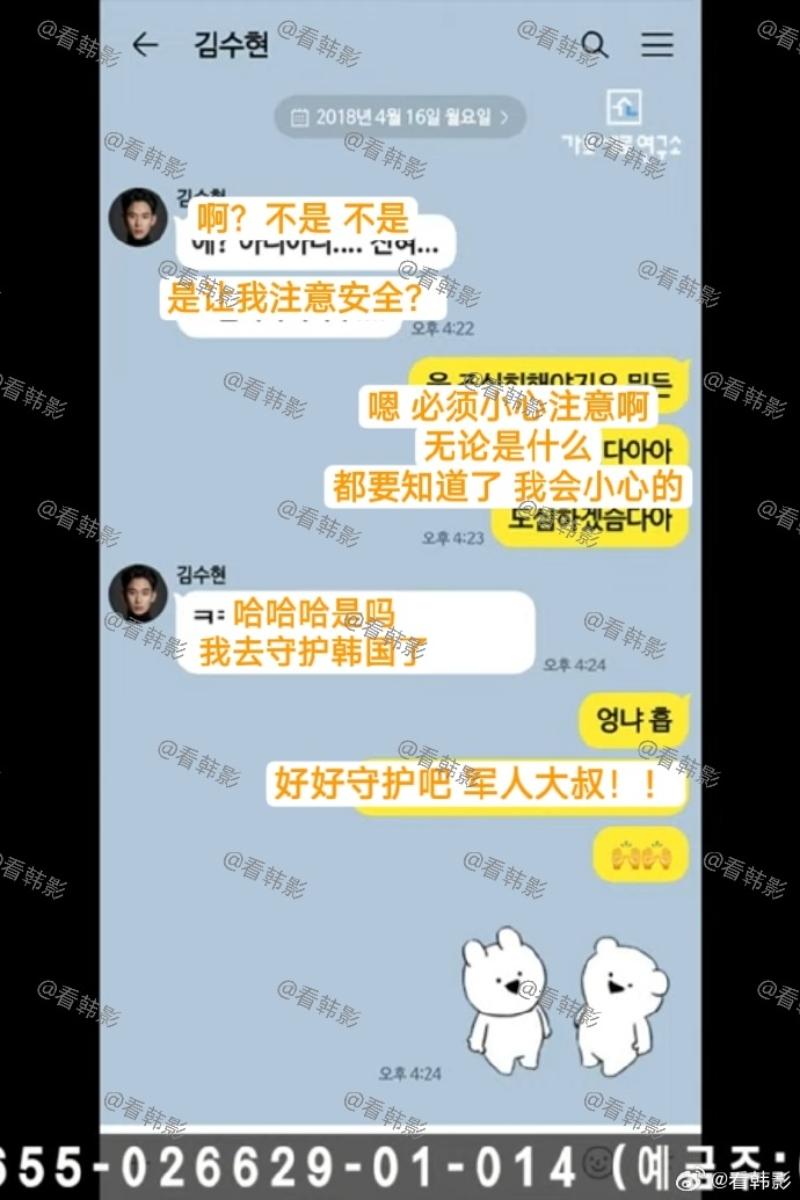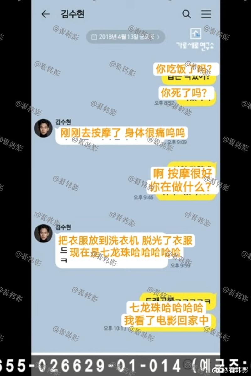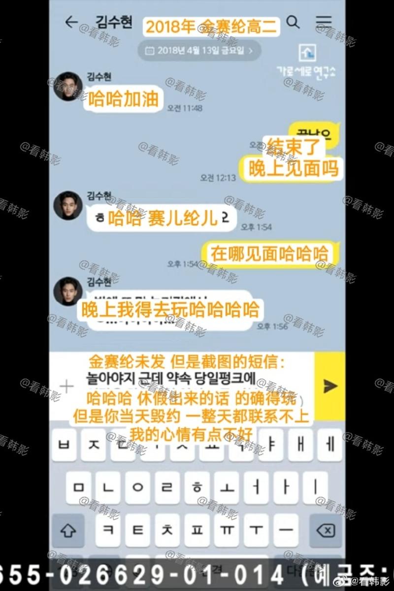 「橫豎研究所」在28號晚上,繼續爆料金賽綸和金秀賢之間的聊天,這次公開了2018年,金秀賢在服兵役時,和就讀高二未滿17歲的金賽綸的聊天!