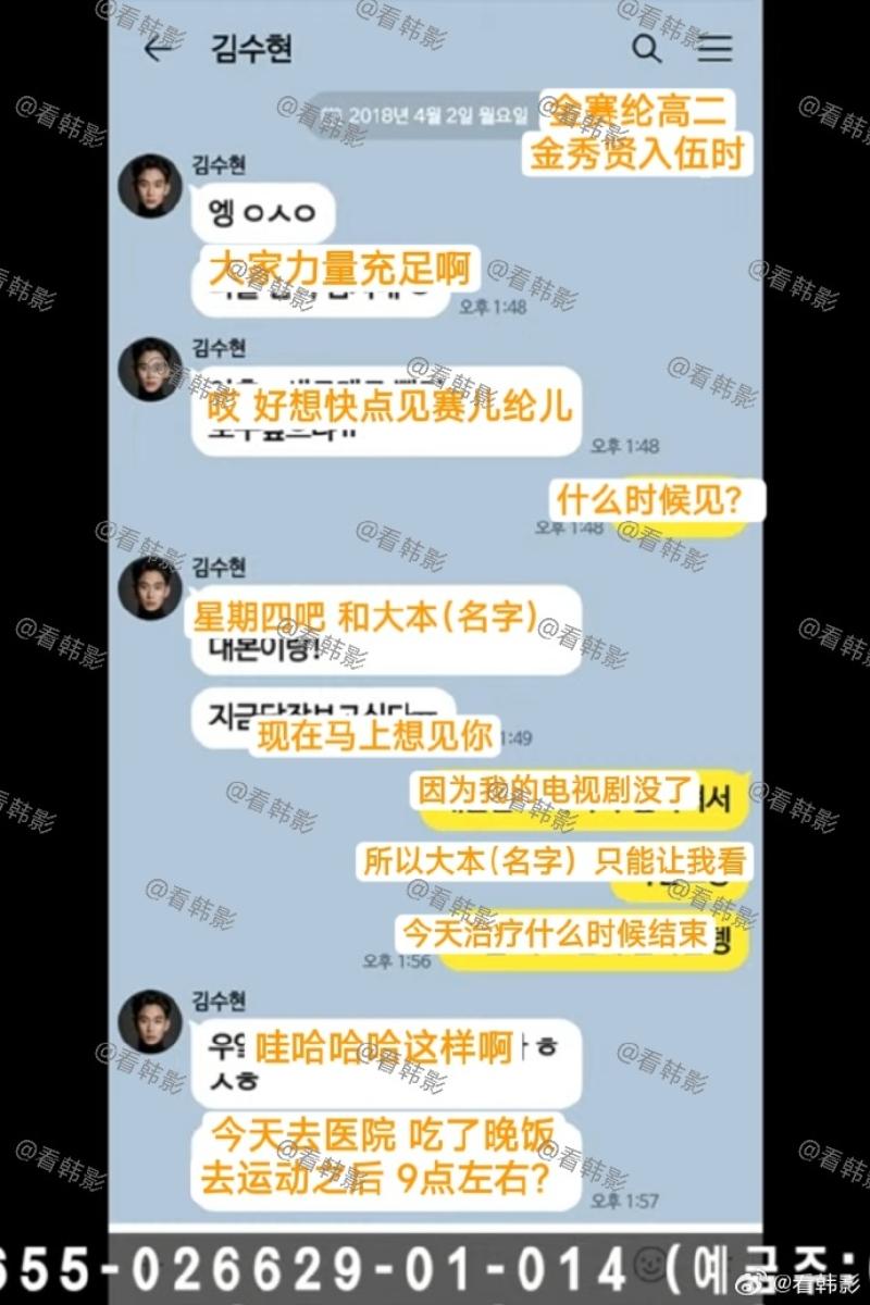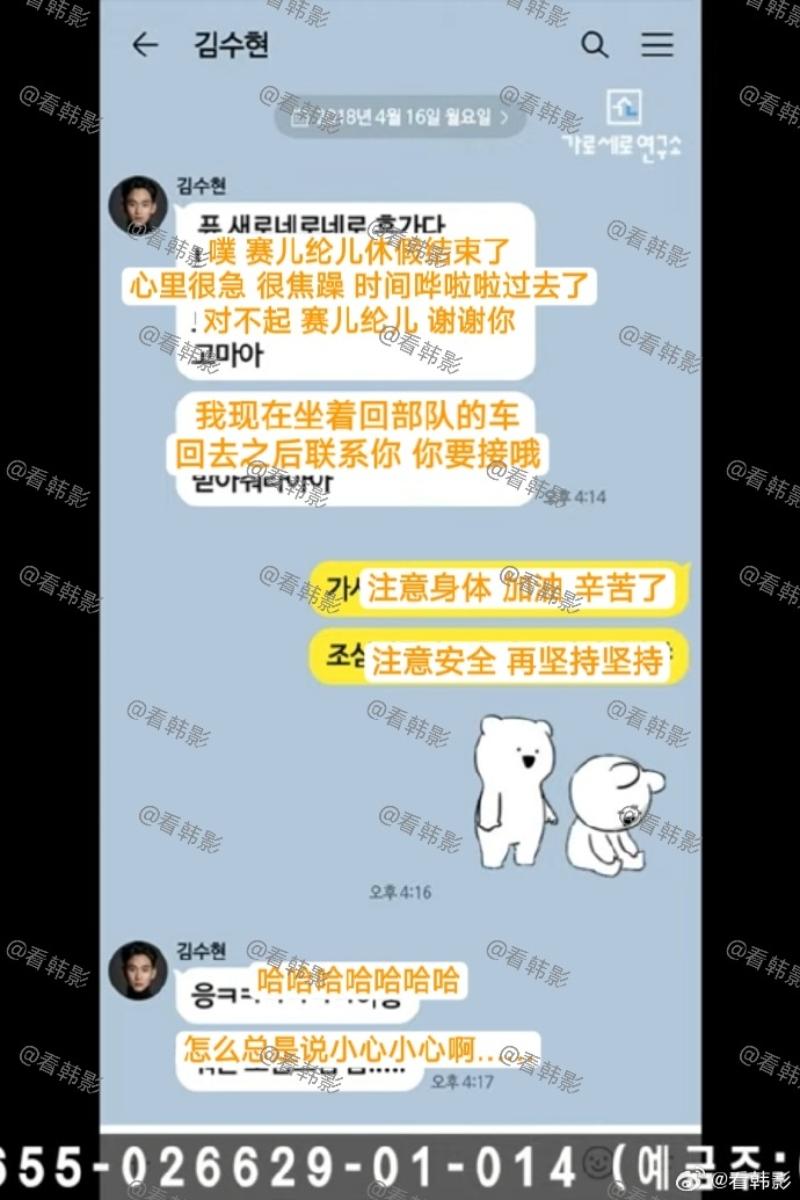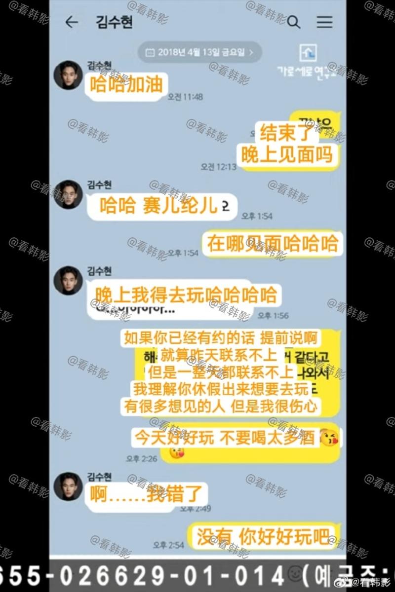 「橫豎研究所」在28號晚上,繼續爆料金賽綸和金秀賢之間的聊天,這次公開了2018年,金秀賢在服兵役時,和就讀高二未滿17歲的金賽綸的聊天!