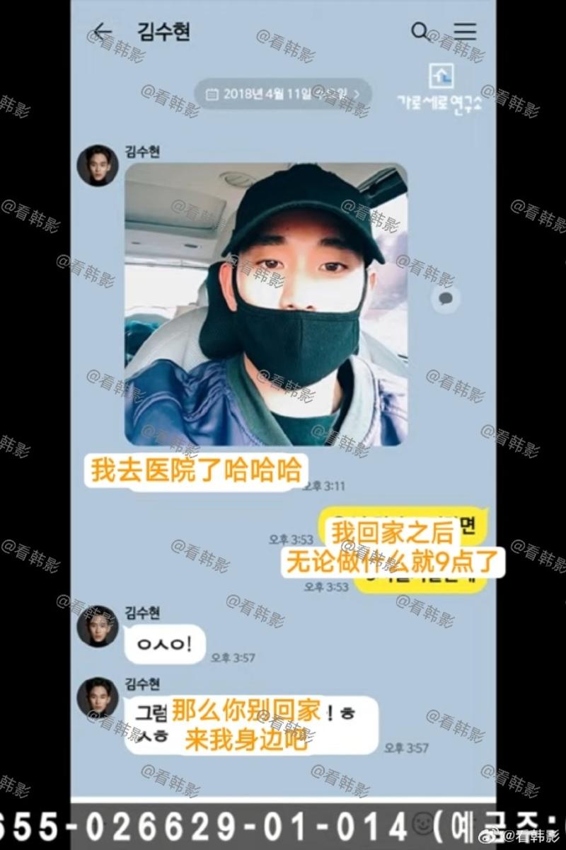 在聊天截圖中,可以看見金秀賢發送了自拍給金賽綸,還要求:「那麼你別回家,來我身邊吧!」