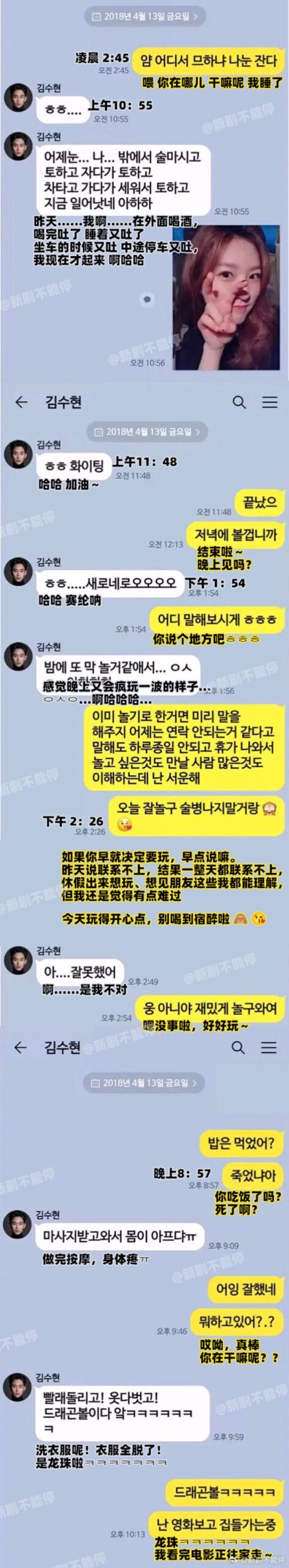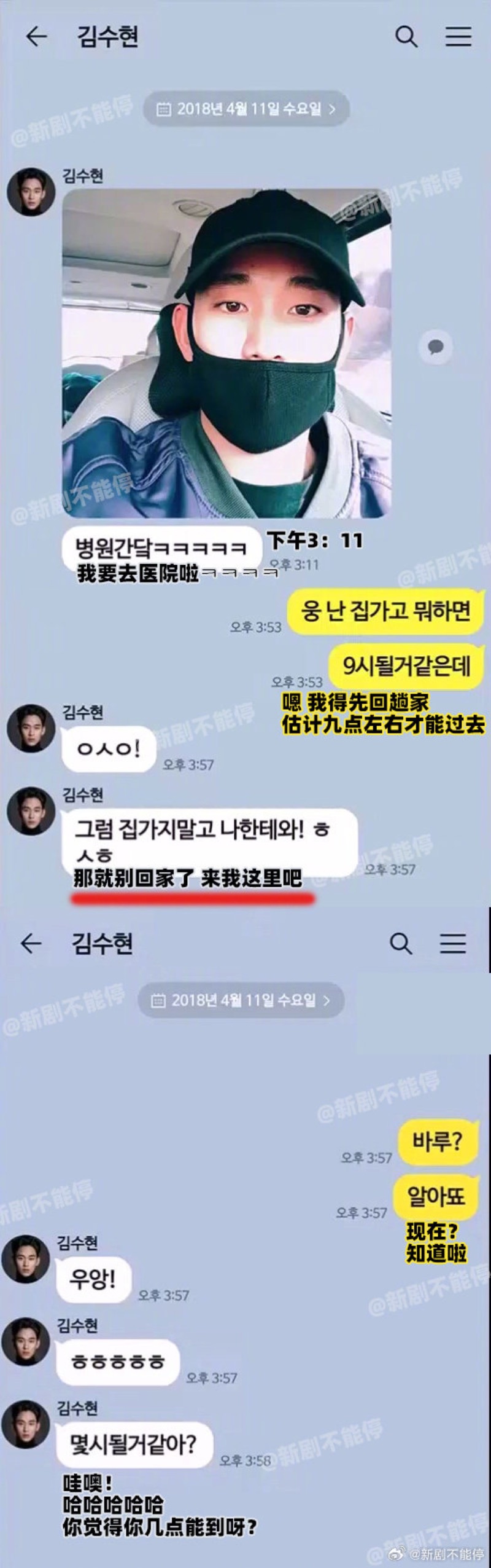 而橫豎研究所公開的2018年聊天內容,被指當時正在服兵役的金秀賢,似乎對金賽綸進行了冷暴力,甚至表示金秀賢只對“初中生”的金賽綸有興趣?這就來看看對比👇