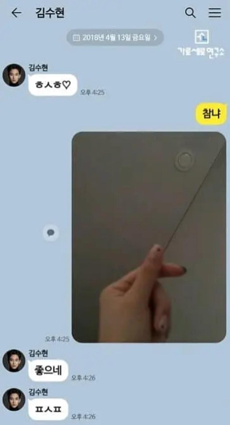 就是說,就連韓網友都不得不佩服中國網友的扒細節能力啊!是噠,橫豎研究所在28號直播中,再次曝光了新的爆料,公開了在服兵役的金秀賢,和金賽綸之間的聊天👇