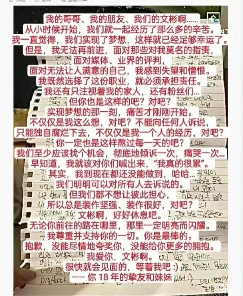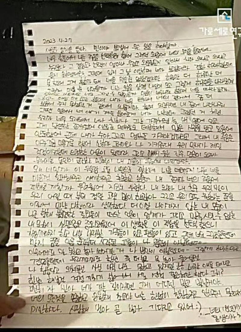 雖然但是,也有網友表示拒絕帶節奏,因為在D社報道公開後不久,文彬就離世了。而在橫豎研究所公開的,金賽綸寫給已故文彬的信中,還提到了「崩潰的東敏(車銀優本名)」,如果兩人真的有隔閡,根本不會再提起車銀優👇