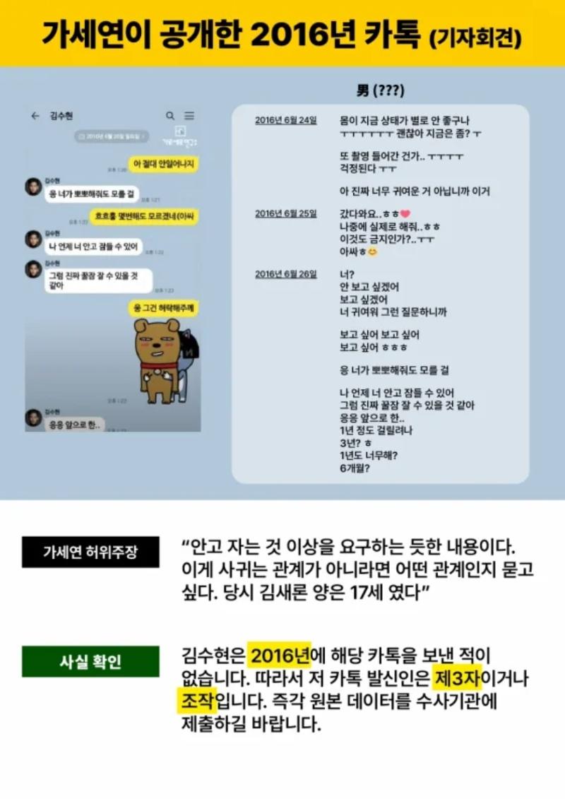 金秀賢回應:2016年金秀賢沒有發過這個信息,因此這個聊天記錄是第三人,或者是造假的,希望遺屬立刻把原版訊息交給搜查機關