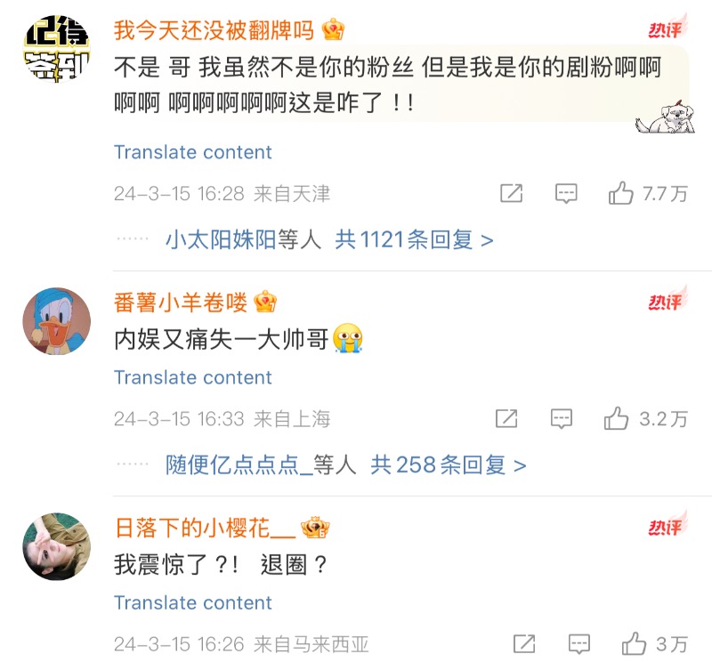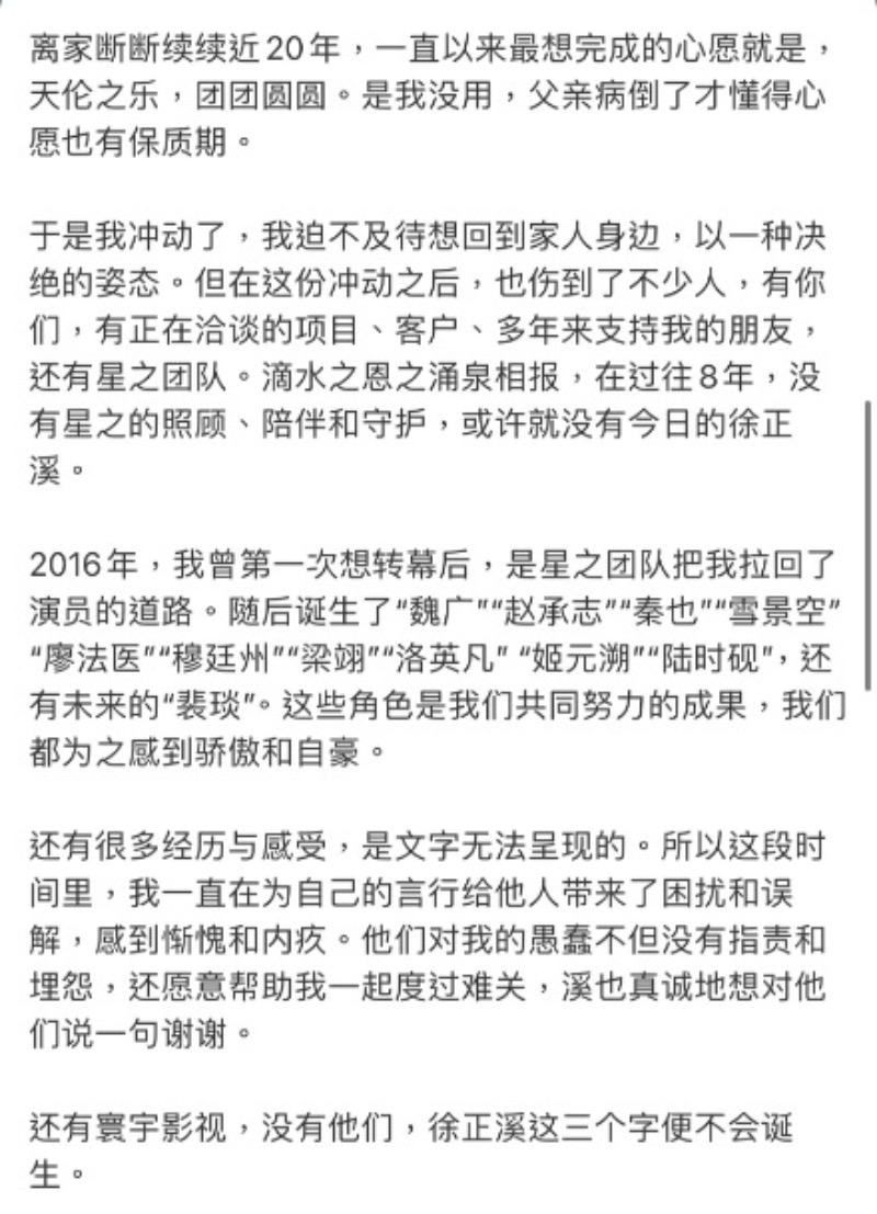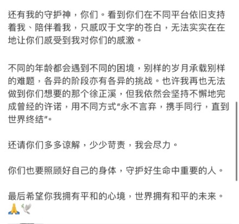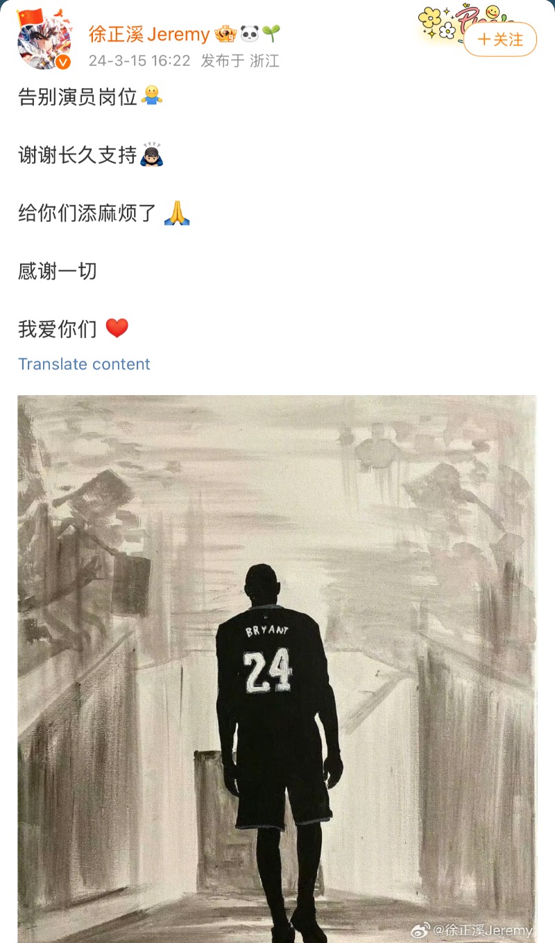 是達,去年三月十五號,一向是陸劇中「權謀專業戶」的徐正溪,無預警發文退圈,直接爆了熱搜👇
