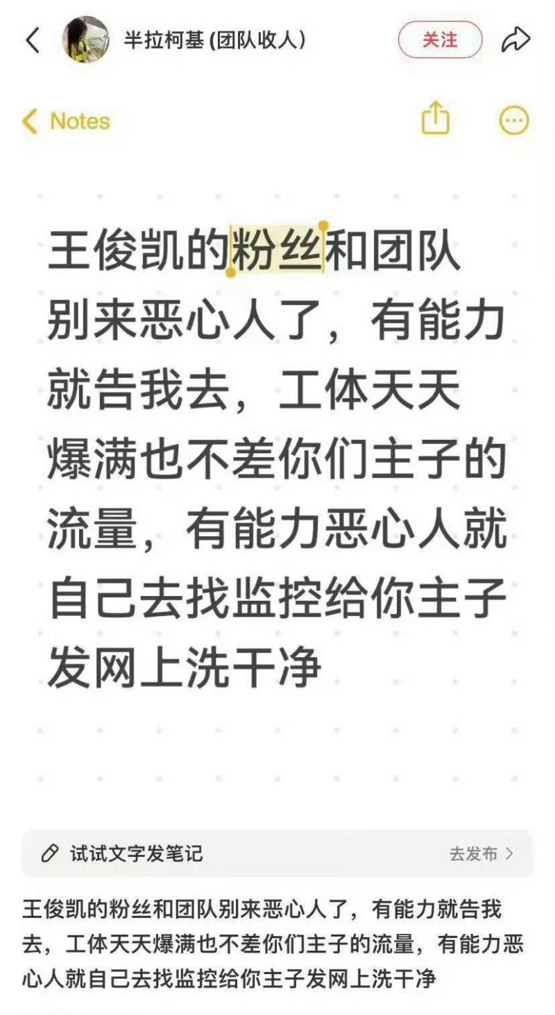 還有喊話王俊凱粉絲,有本事不要全平台捂嘴👇