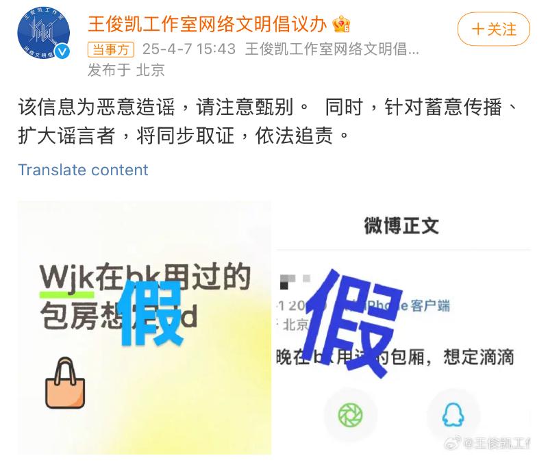 雖然但是,在上了熱搜第一名之後,王俊凱相關對接立刻發文闢謠,表示是造謠的👇