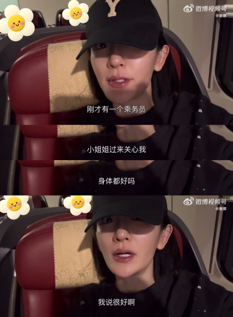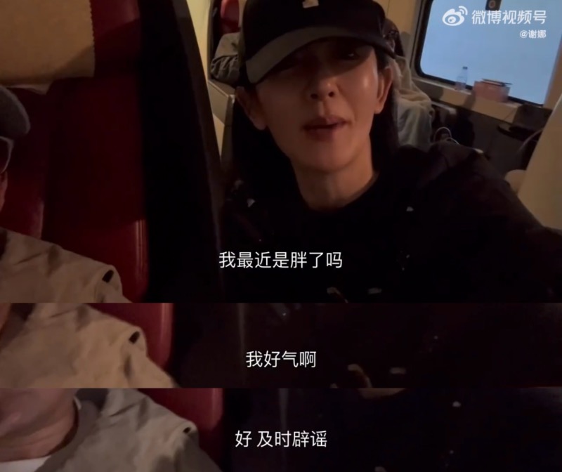 面對網絡流言,謝娜在8號下午發了影片回應,表示自己在高鐵上,突然被乘務員問候身體是否還安好👇