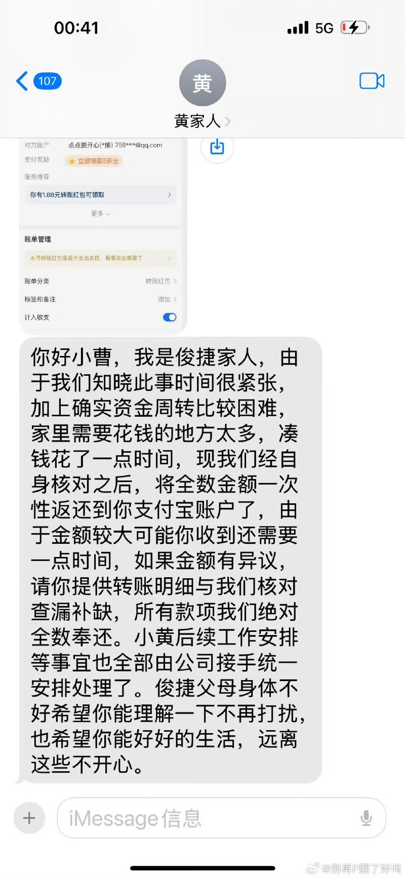 公開了對方家人的轉賬記錄👇