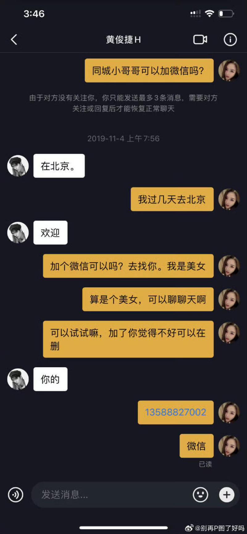隨後公開了自己和黃俊捷的相識方式,原來是她發私信給黃俊捷,就這樣在一起了(這麼容易的嗎???)👇