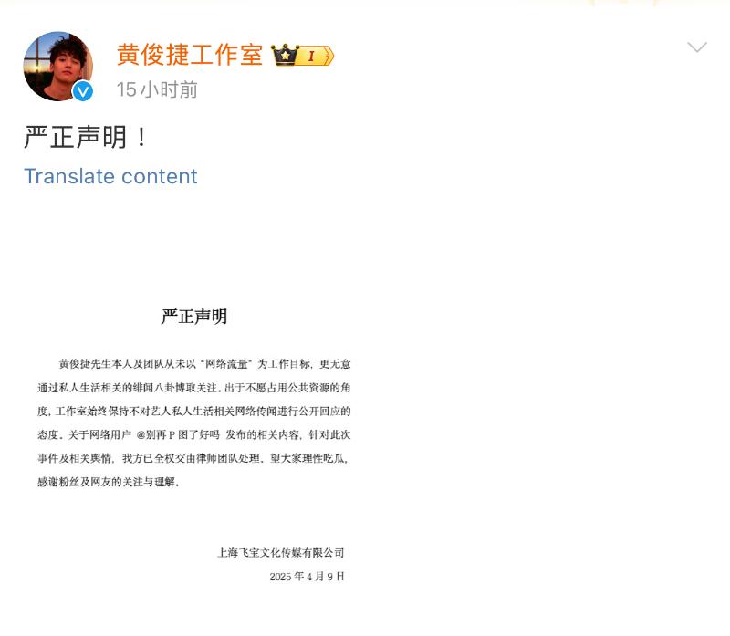 隨著熱議,黃俊捷工作室在凌晨發文回應,表示是不實指控,雖然但是,被發現聲明信甚至沒有蓋上公章👇
