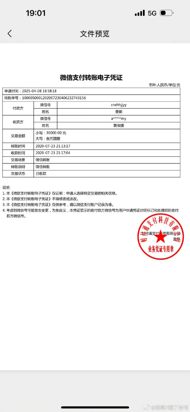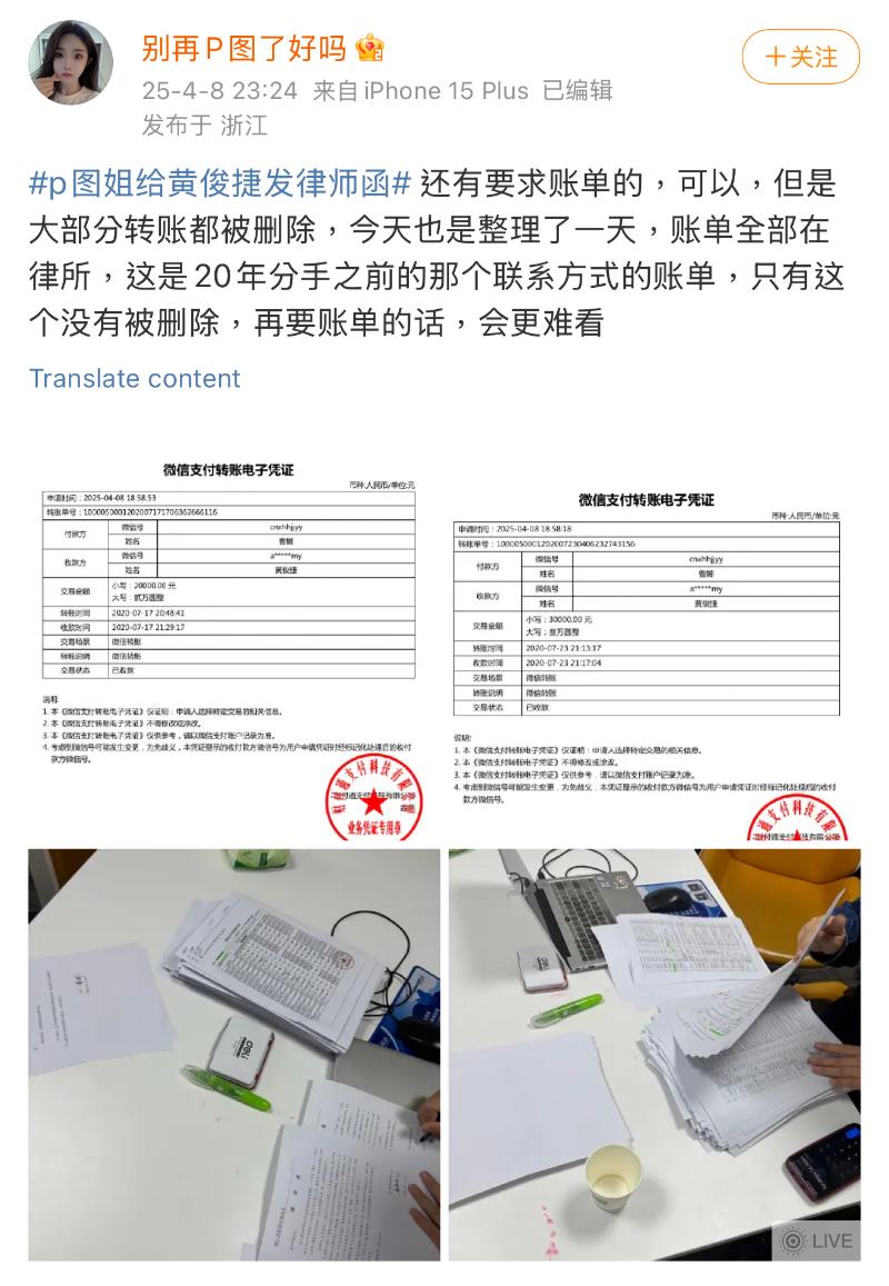在黃俊捷工作室回應之後,P圖姐曬出了最新的30萬轉賬記錄,表示已了結,祝各自安好👇