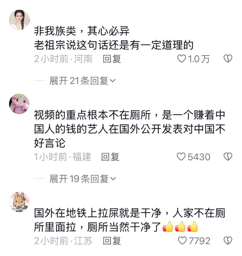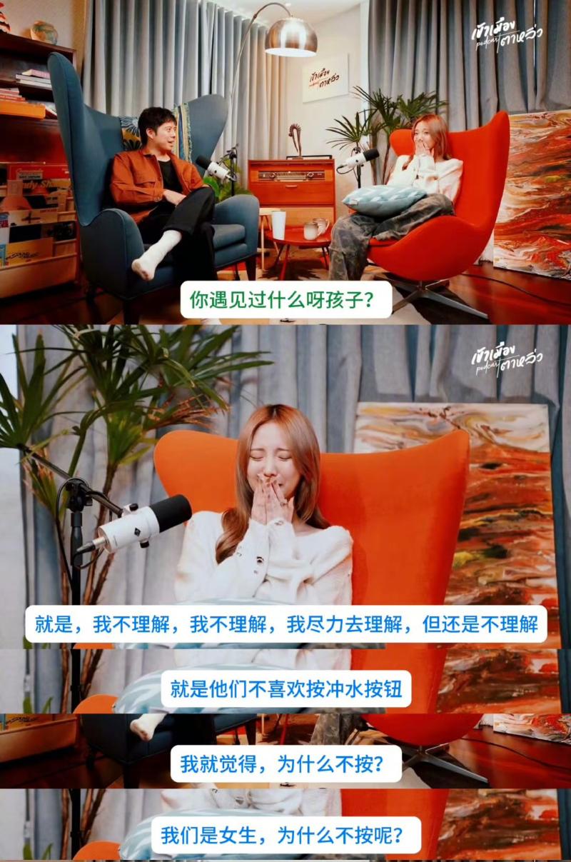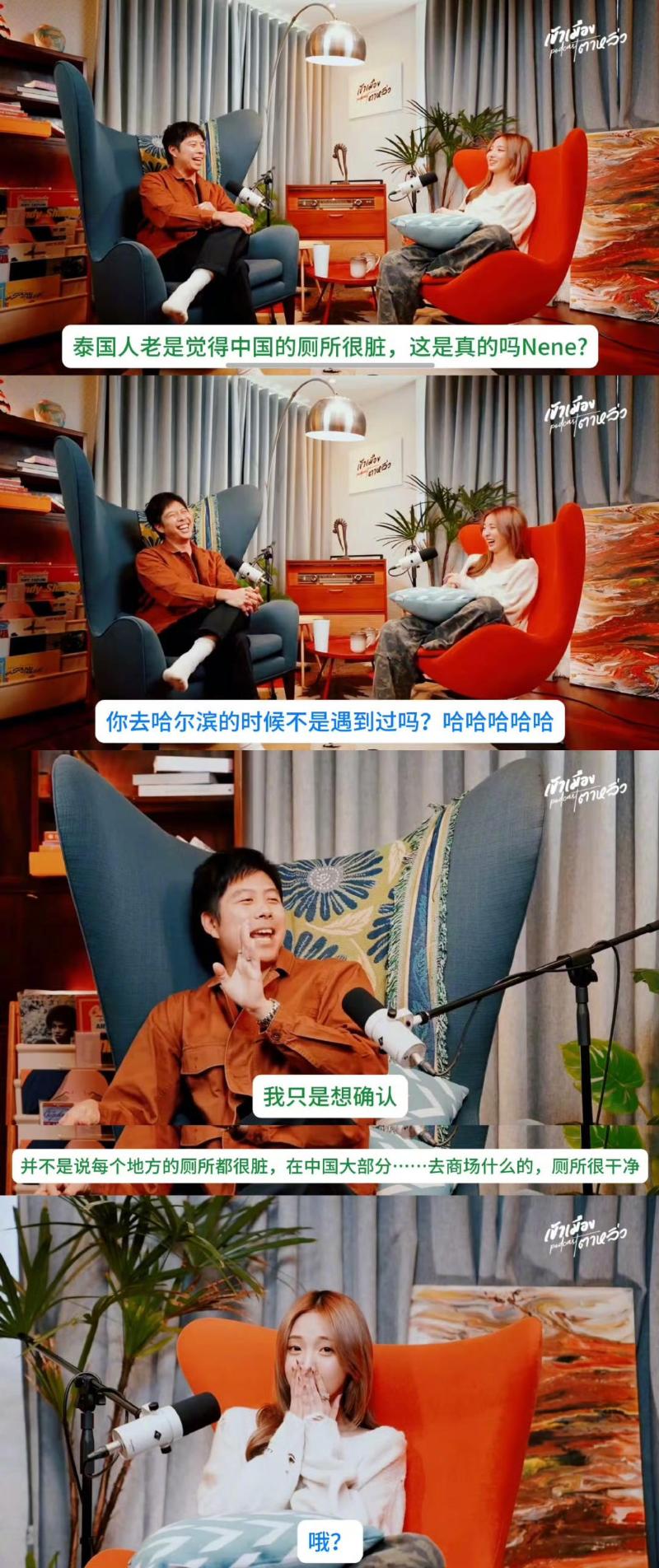 而在其最新的訪問中,再次吐槽了有關中國的課題,這次的話題是…中國的廁所!是噠,鄭乃馨在訪談中,被主持人問到泰國人老是覺得中國廁所的廁所很髒,她一開始直接反問主持人:「你去哈爾濱的時候不是遇到過嗎?哈哈哈哈哈」主持人表示自己只是想確認,她露出了一個很有深意的表情👇