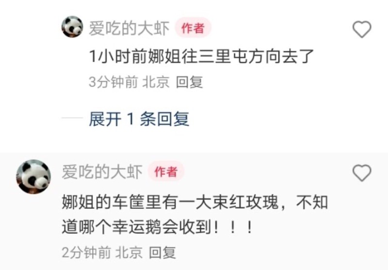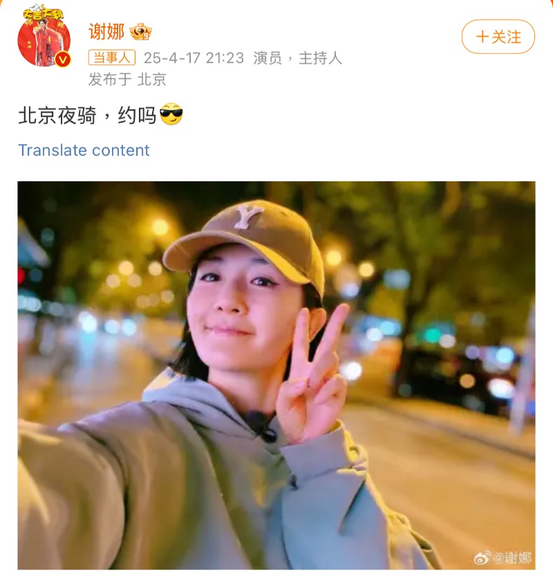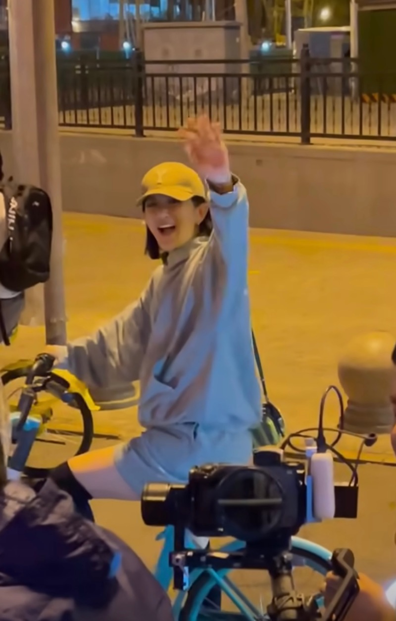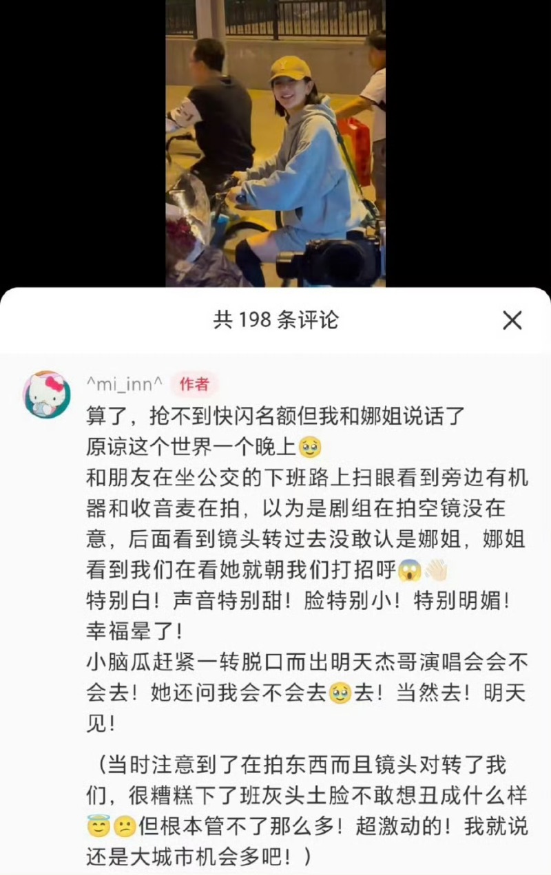 接著網友紛紛發帖,表示在路上遇到騎單車的謝娜👇