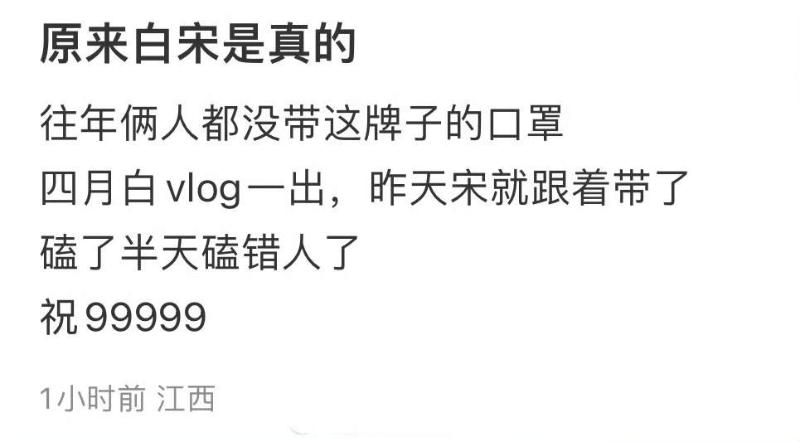 來看看,小白在最新vlog中戴的口罩,宋軼居然近日也戴上了👇