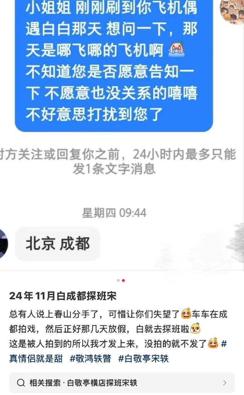 此外,前不久也有網友發文,表示去年11月碰到了白敬亭去探班宋軼👇