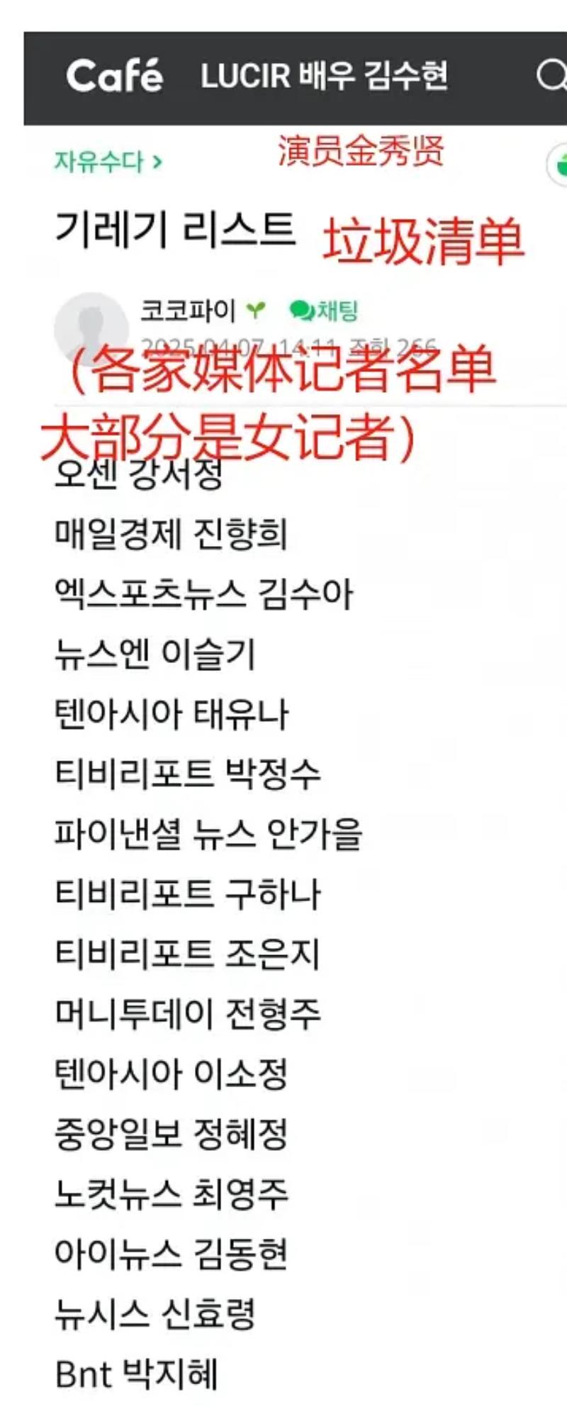 先來看看,這次被討論的原因,是因為有記者受不了騷擾,因此去金秀賢官咖求放過!有網友以「記者們快看!金秀賢粉絲正在整理名單實施網暴」為標題,公開了金秀賢粉絲製作的“死亡筆記”:整理媒體名單並恐嚇記者!