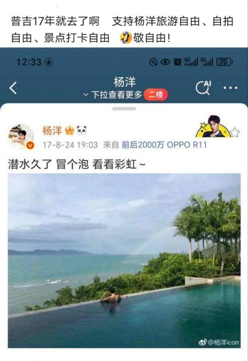 況且楊洋一向喜歡泰國,早在2017年就去了普吉島旅遊👇