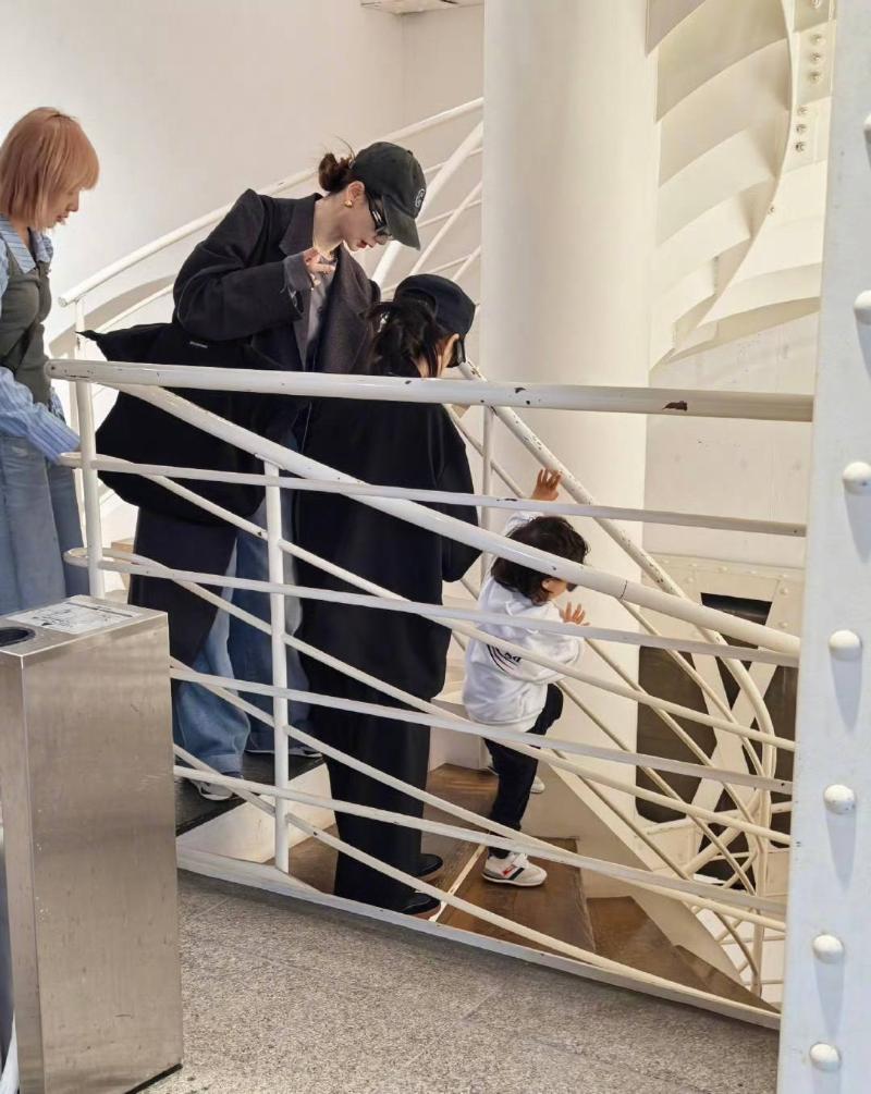沒想到隨後又有網友在日本代官山偶遇一家人,這次連小Seven也入鏡了!先來看看戚薇和Lucky,真的看起來一模一樣👇