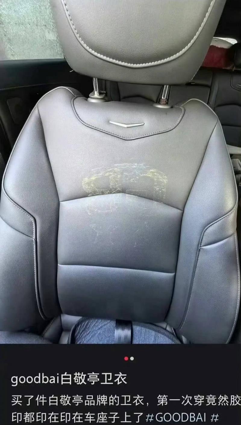 第一次穿,結果衣服的膠印直接印在車座椅上面了😳