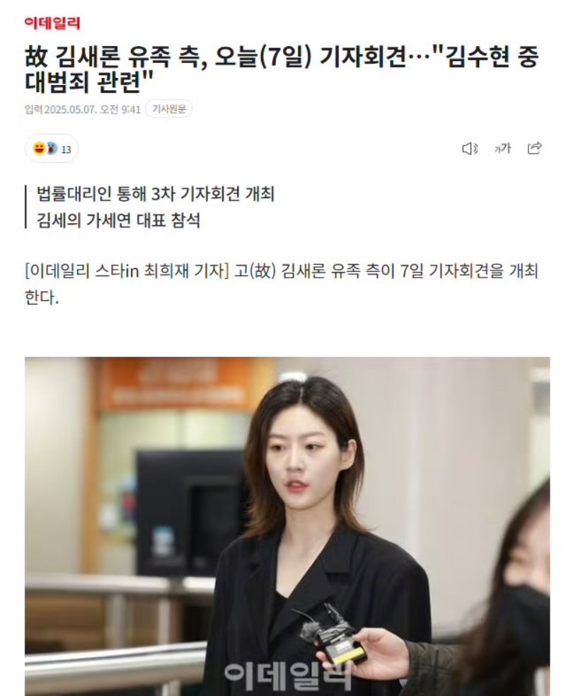 是達,自3月27日召開記者會之後,金賽綸家屬沈默40天之後,在7號下午再次召開記者會,公開金秀賢重罪證據,而且媒體需實名制才能入場,非新聞媒體不得入內。