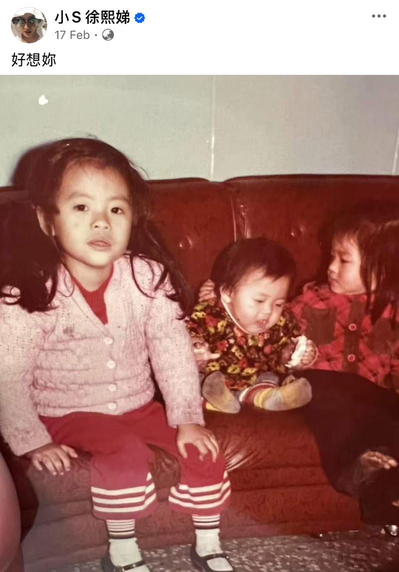 之後曬出姐妹們的兒時合照,表示想念大S!