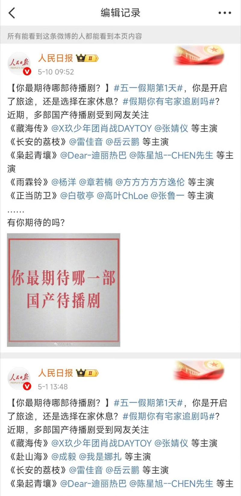 隨著熱議,網友發現官媒也下場了!之前「人民日報」曾兩次宣傳《赴山海》,但目前已經編輯了這些微博,把《赴山海》都刪除了👇