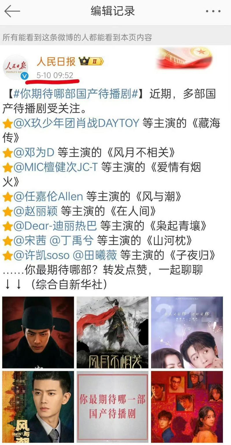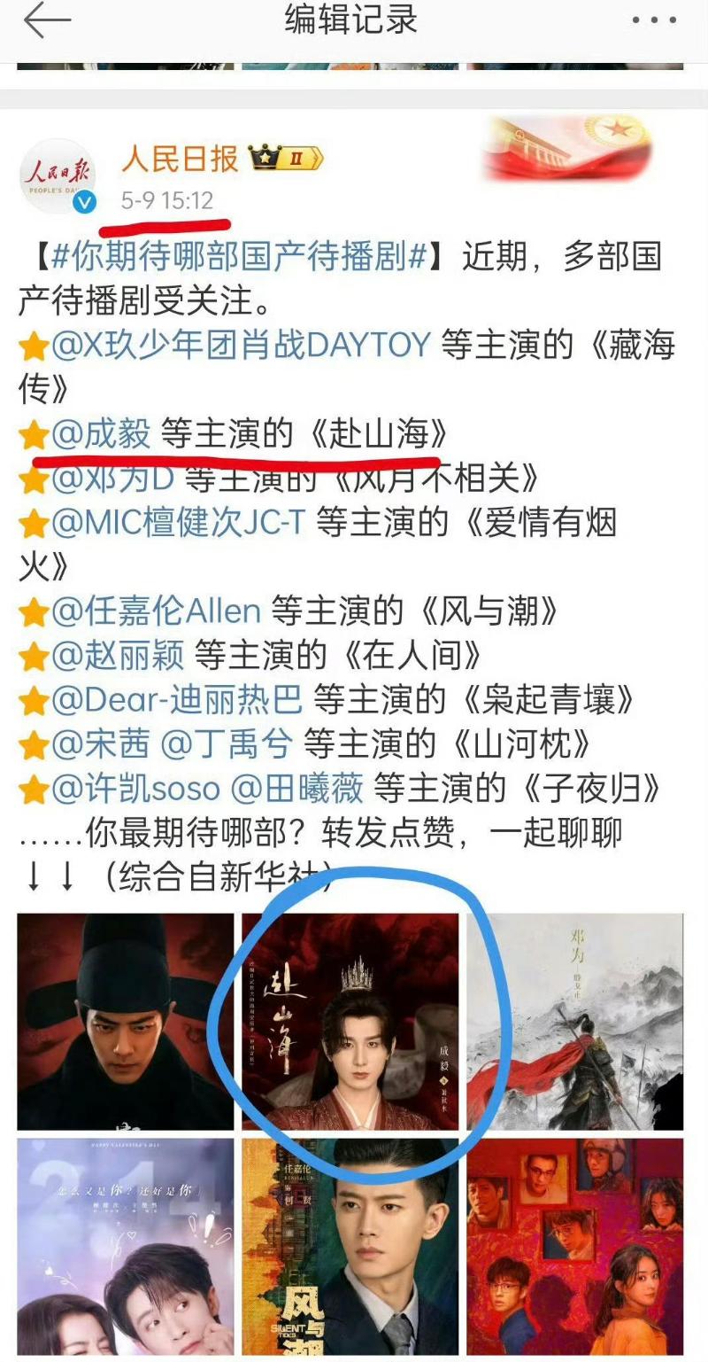 隨著熱議,網友發現官媒也下場了!之前「人民日報」曾兩次宣傳《赴山海》,但目前已經編輯了這些微博,把《赴山海》都刪除了👇