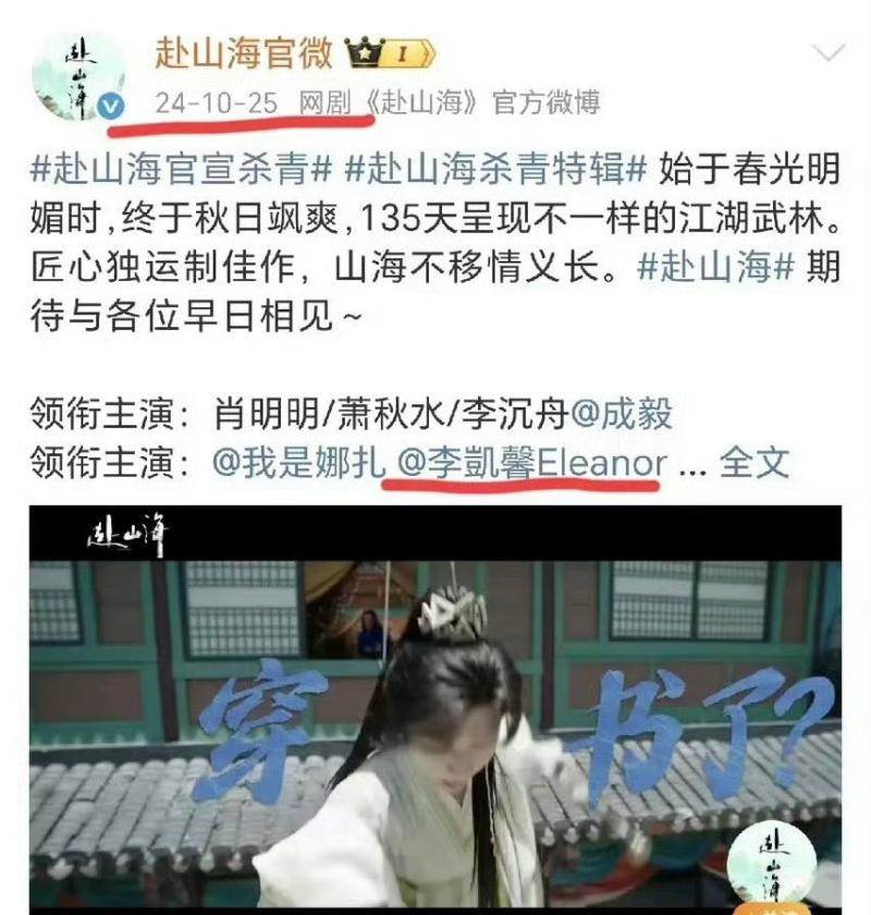 在被扒出辱華爭議後,《赴山海》官方在最新宣傳帖中,已經沒有帶李凱馨👇