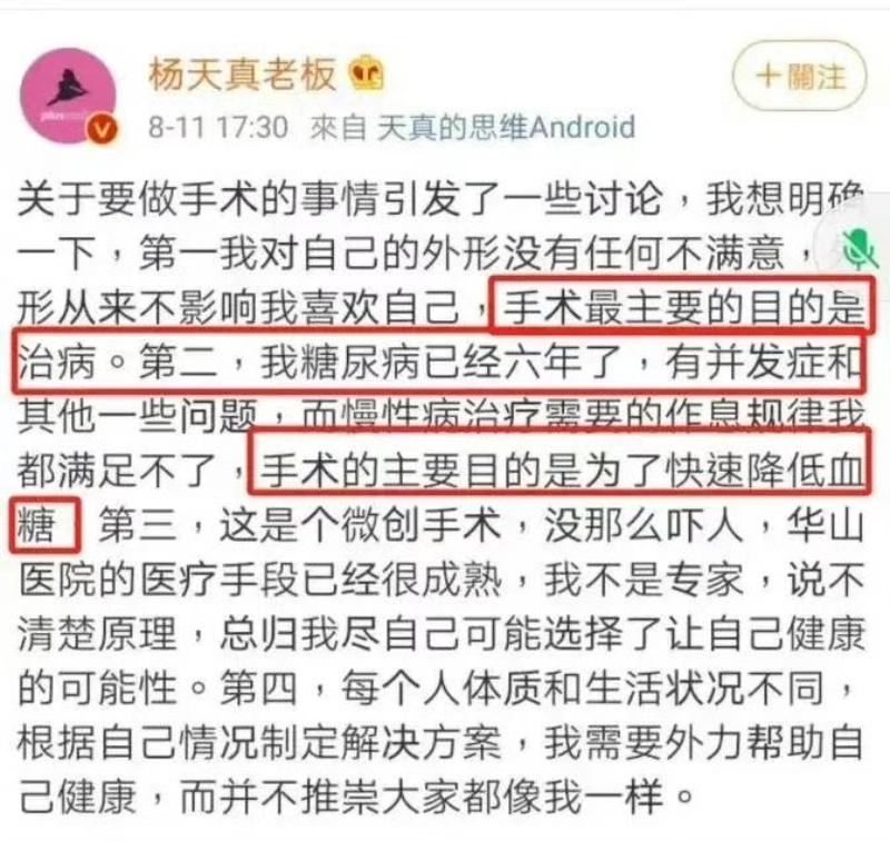 這…這真的是我們的楊天真嗎?事實上,楊天真之前曾因為糖尿病併發症,在醫生建議下,割除了一半的胃👇