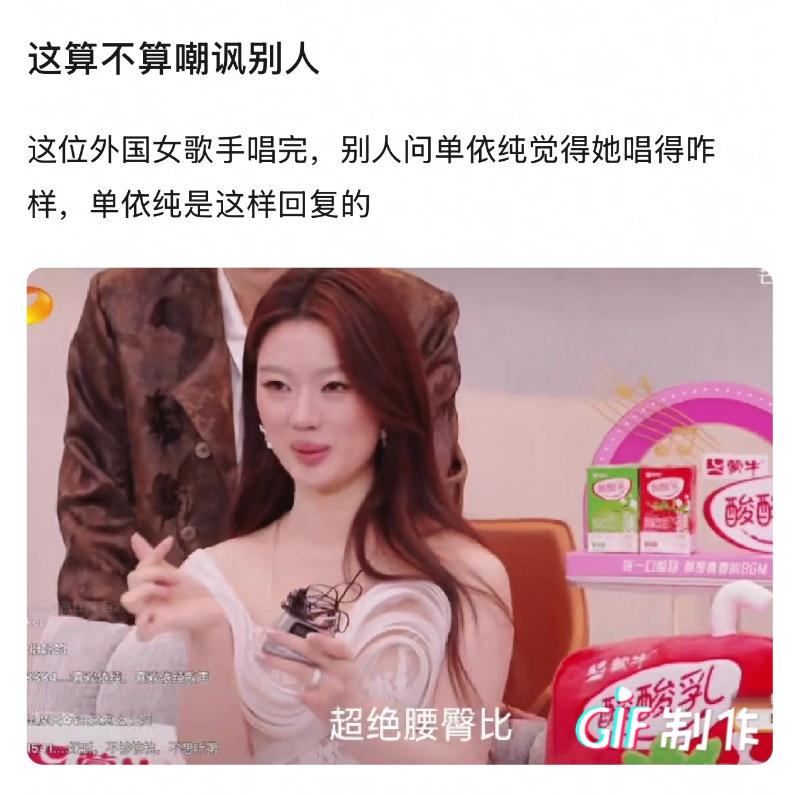 而單依純在評價時,突然來了句「超絕腰臀比」,加上說完後的那陣狂笑,引起了網友不適👇
