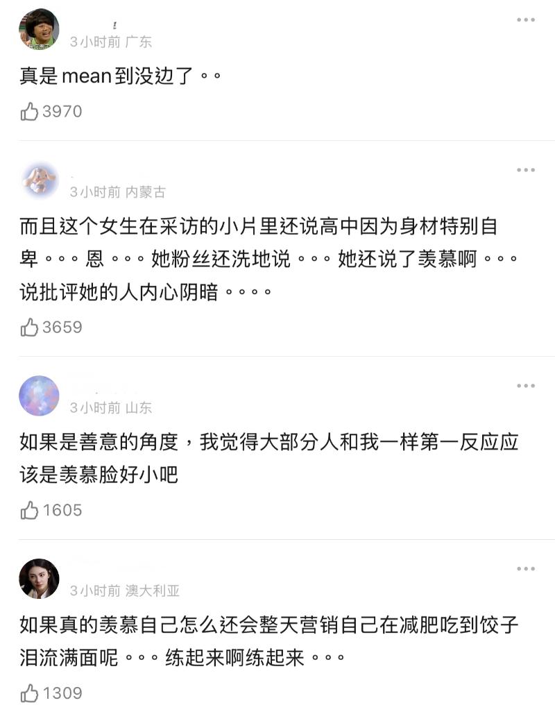 為什麼網友們會這麼評價呢?原因是Grace之前在節目采訪中就提到,自己在求學時期,就因為身材成為了被嘲諷的對象👇