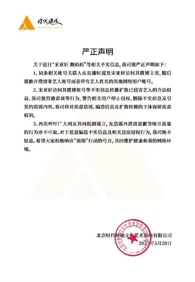 這到底是什麼和什麼啊?原來是一位叫「鵝媽媽」的網紅,在直播時表示宋亞軒曾拜訪了自己的微博主頁,而且不止一次👇