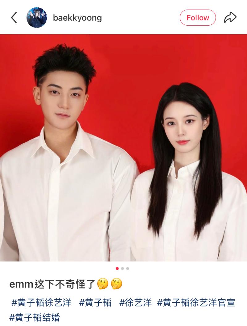 果然這看起來像是這兩人會做的事啊!是噠,都知道黃子韜和徐藝洋在去年12月領證,一公開就爆了微博!