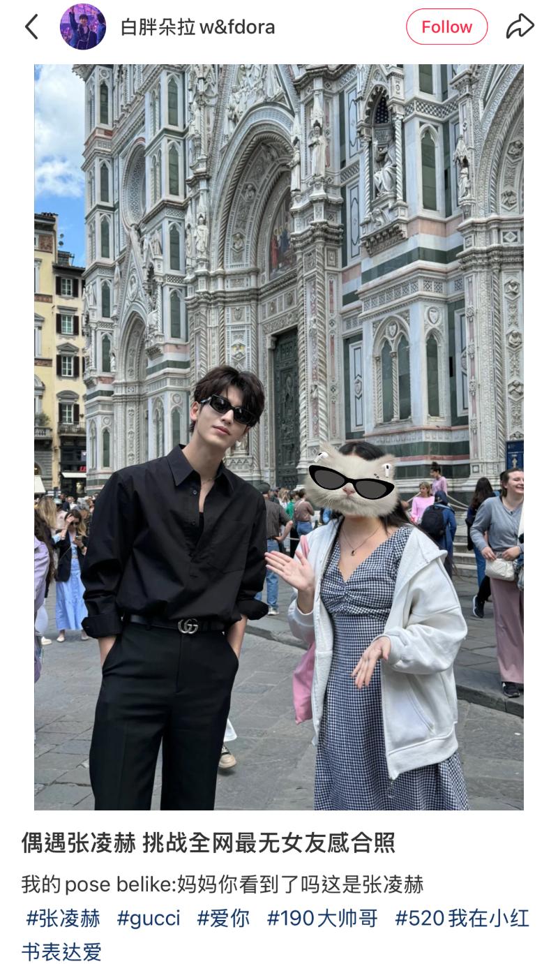 近日為了參加服裝秀,張凌赫再次飛往意大利參加服裝秀,這次一樣在意大利佛羅倫薩成為了人形立牌,處處被偶遇合照👇