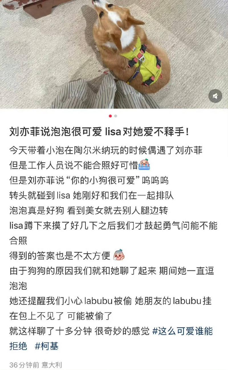 據悉,Lisa在逗弄小狗期間,還叮囑主人要留意她的Labubu,表示自己朋友的Labubu不見了,懷疑是被偷走了,只能說,果然是熱心市民啊!