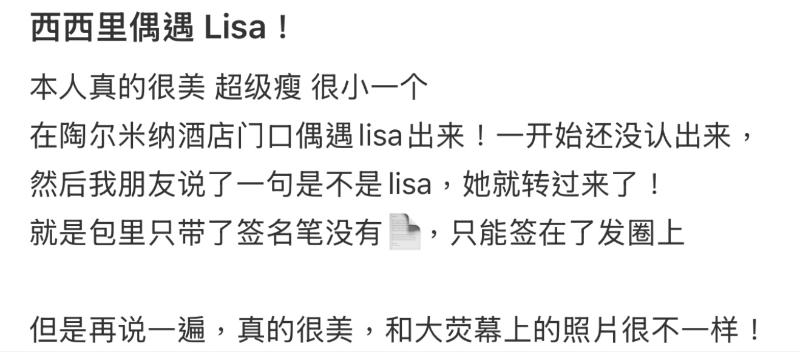 網友西西里偶遇Lisa!聊天內容居然是Labubu!和三公子約會也被遇見了!