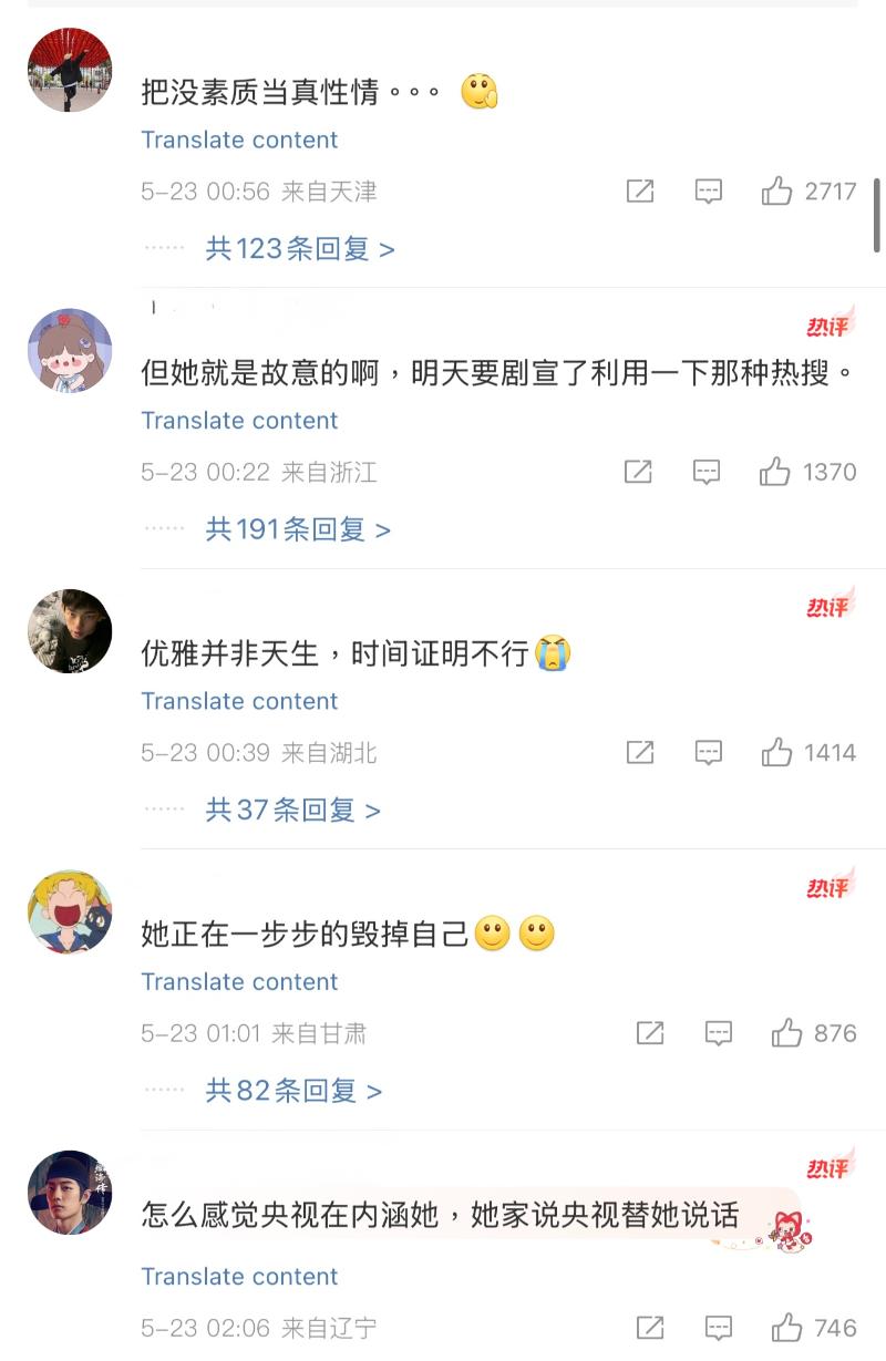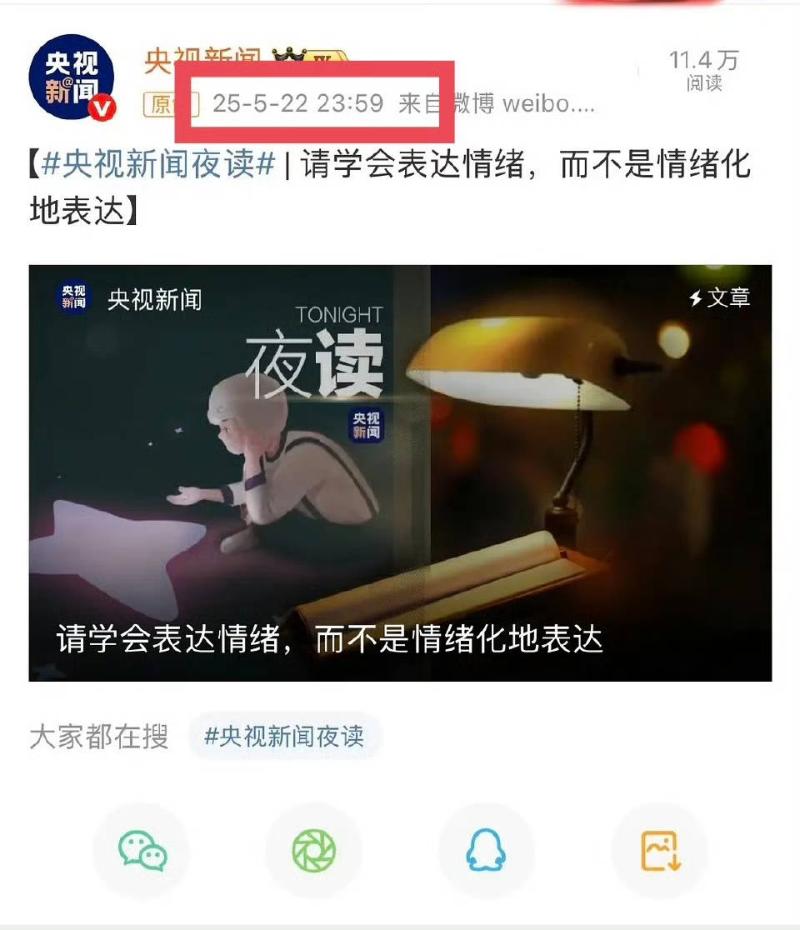 令人覺得搞笑的是,網友發現在趙麗穎發了這幾篇具爭議性的貼文之後,央視居然發了一篇提及言論的貼文,被網友解讀在「內涵」趙麗穎👇