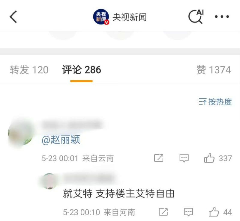 令人覺得搞笑的是,網友發現在趙麗穎發了這幾篇具爭議性的貼文之後,央視居然發了一篇提及言論的貼文,被網友解讀在「內涵」趙麗穎👇