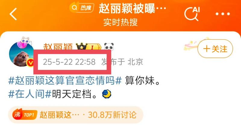 是噠,趙麗穎在五月中被曝戀情,和之前有話立刻闢謠不同,這次趙麗穎和工作室都沒有回應,一直到22號晚上,突然發文宣傳新劇,還自己帶了戀情tag。雖然但是,她的回應卻被批「沒教養」,意外引起了爭議👇