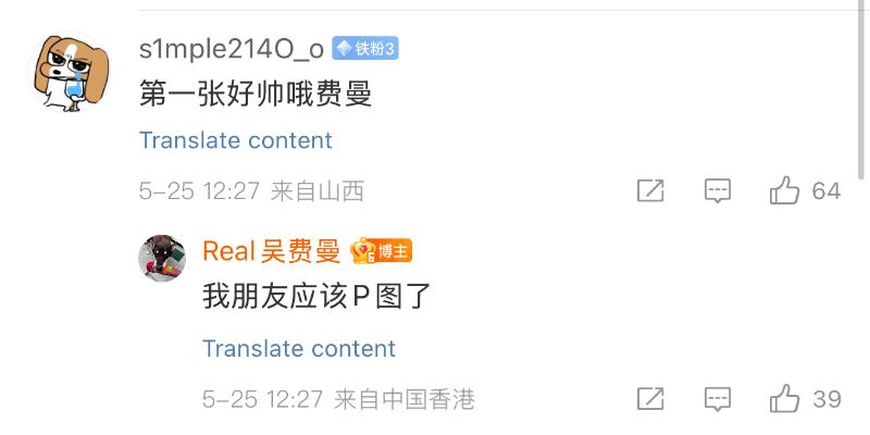 有網友評論,其中一張照片拍得很帥,費曼還回應表示朋友P圖了~
