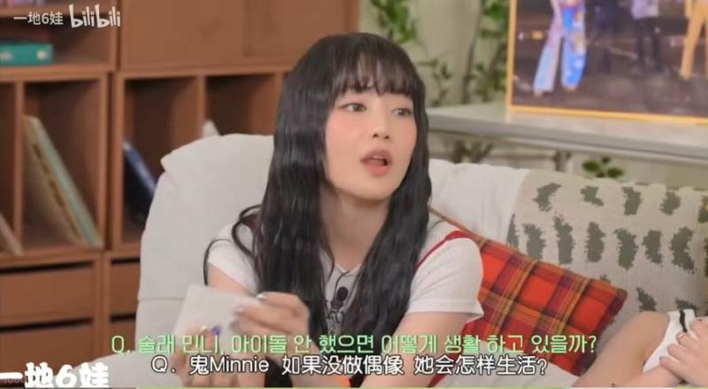 另外,另一道有關Minnie的問題也被熱議,節目組的問題是:「Minnie如果沒做偶像,她會怎麽樣生活?」