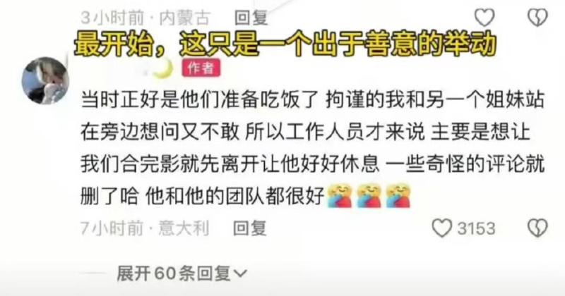 就是這麼一段話,就被解讀成所有的偶遇合照,都是工作室特意邀請安排,而不是網友們主動要求的,黑粉甚至以此來嘲諷張凌赫是「牛郎」,想營造自己的高人氣👇