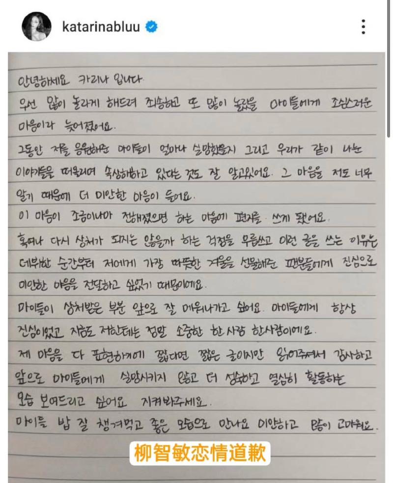 第二次是因為戀情道歉,這次寫了手寫信👇